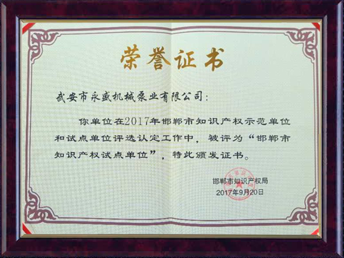 知識產(chǎn)權(quán)試點(diǎn)單位證書
